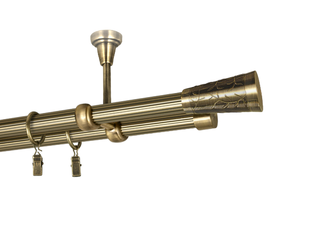 Карниз Quadrum Борджеза 300 см подвійний Антик 19/19 мм рифлена (кільця з прищіпками)