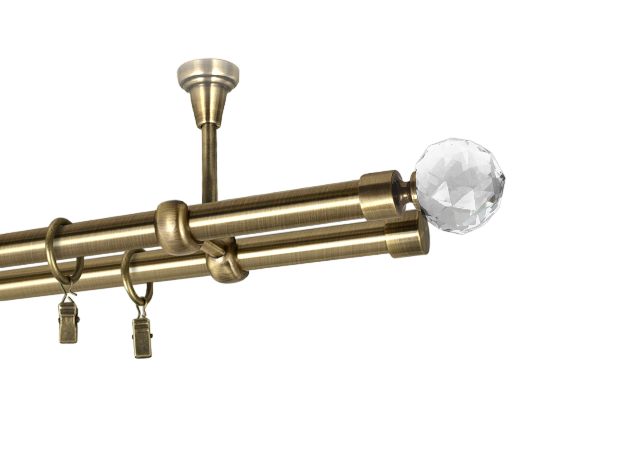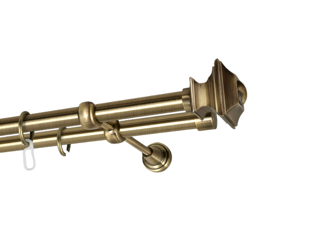 Карниз Orvit металевий дворядний Верді труба гладка 19/19мм кронштейн стельовий 300см Антик (H010569)