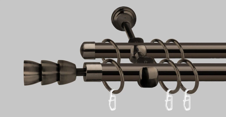 Карниз для штор Decolux металевий дворядний 19 мм чорний блиск ЕМ152 160 см