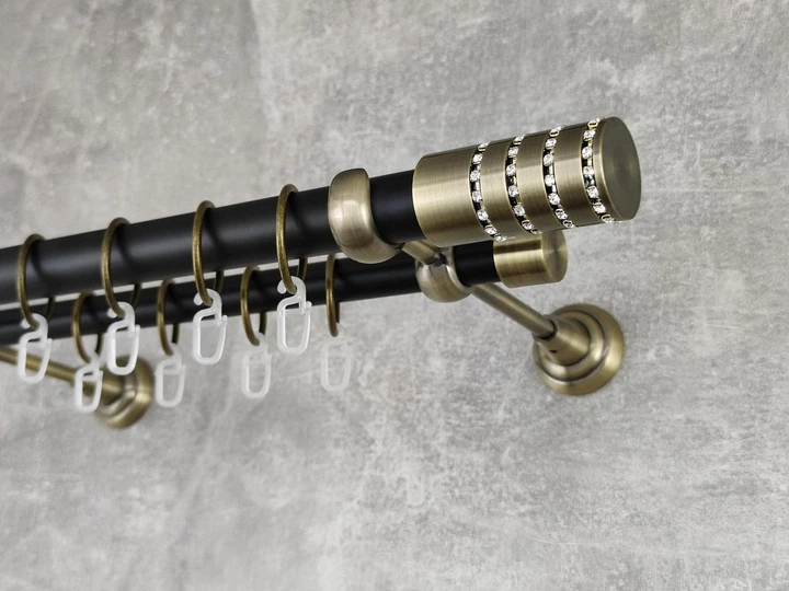 Карниз Orvit Арезо металевий дворядний ретро гладка труба кільце металеве Чорний Оксамит 25\19 мм 240 см (00-00018194)
