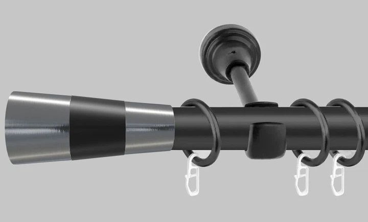 Карниз для штор Decolux металевий однорядний 19 мм Чорний валео чорний + сталь 300 см