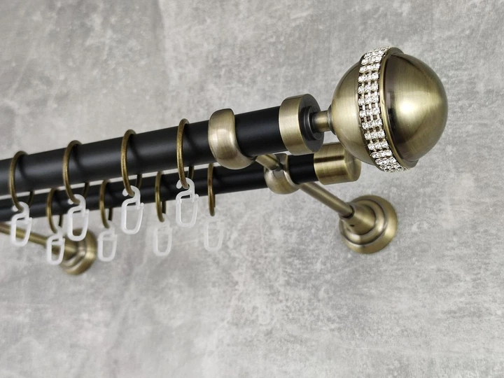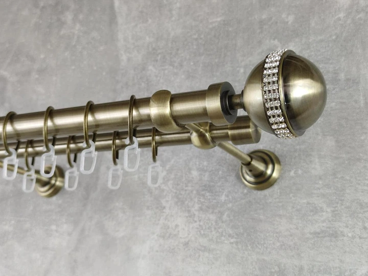 Карниз MStyle металевий для штор дворядний Таджа 25/19мм ретро гладкий 200см Антик (A011310)