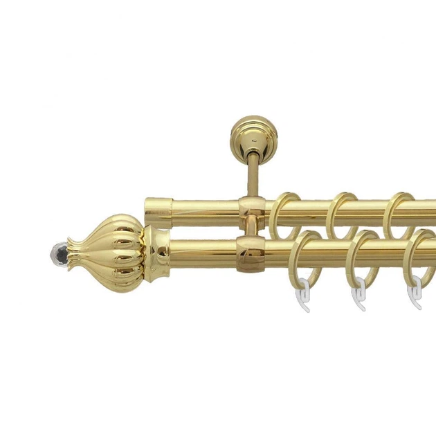 Карниз Orvit Таджа-Кристал металевий дворядний литий гладка труба кільце фасонне металеве Золото 19\19 мм 240 см (00-0000950