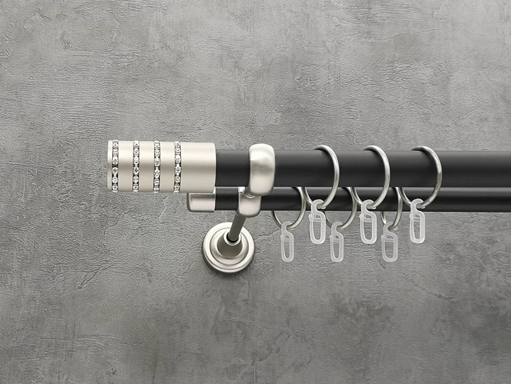 Карниз Quadrum Барамела 320 см подвійний сатин/чорний матовий відкритий 25/19 мм гладка (кільця з гачками)