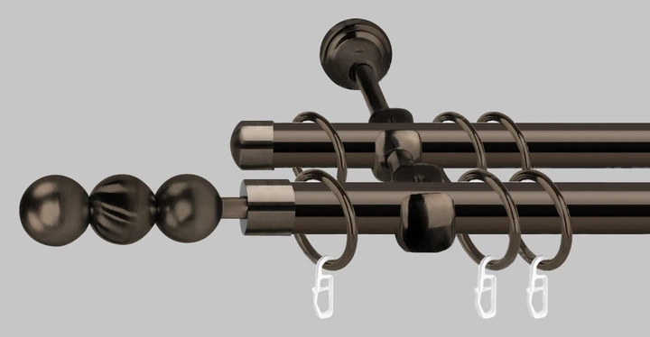 Карниз для штор Decolux металевий дворядний 19 мм чорний блиск ЕМ151