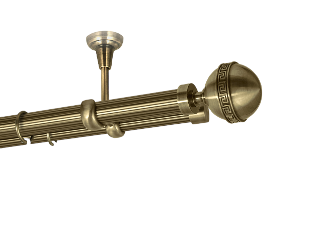 Карниз подвійний кручений Cardinal ПЛУТОН З КРИСТАЛОМ +КУЛЯ БОЛОНЬ з жабкою 300 см антик 19/19 мм