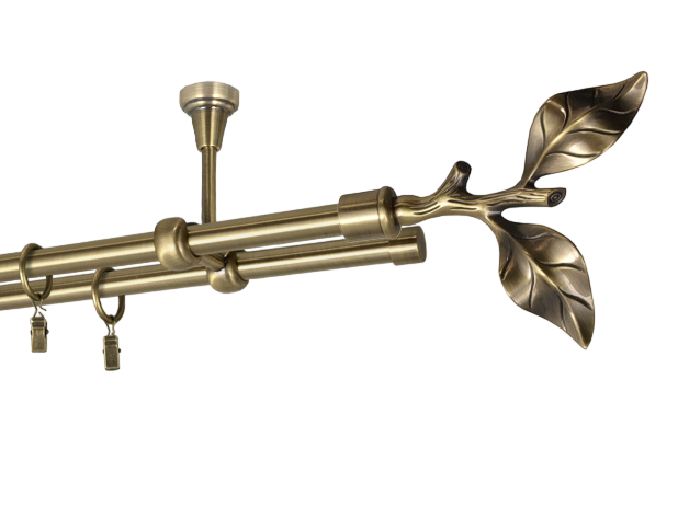 Карниз Orvit металевий дворядний Листок Троянди 16/16мм кронштейн стельовий 400см Антик (G010265)