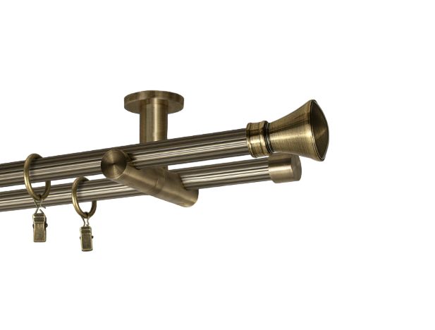 Карниз Orvit металевий дворядний Люксор труба рифлена 19/19мм кронштейн стельовий 160см Антик (H010766)