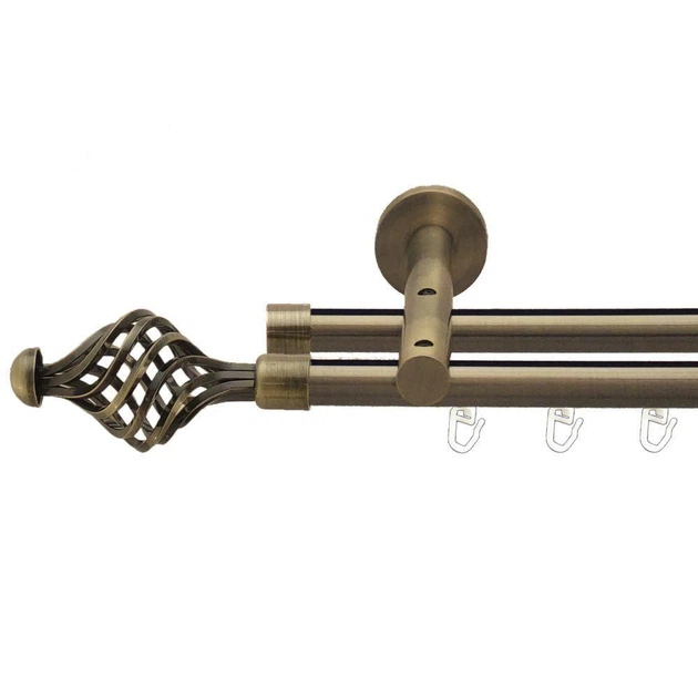 Карниз металевий Orvit Дуо двохрядний 25/19 мм ретро 320см антик