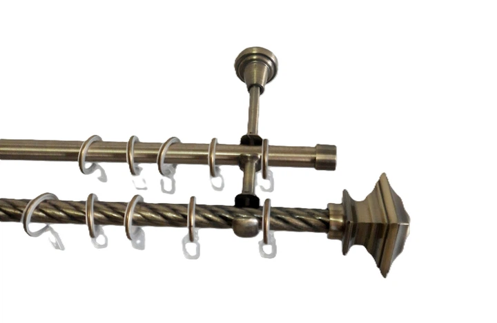 Карниз двійний кручений Cardinal СЕВІЛІЯ+РУЛЛО з гачком 19/19 мм 200 см антик
