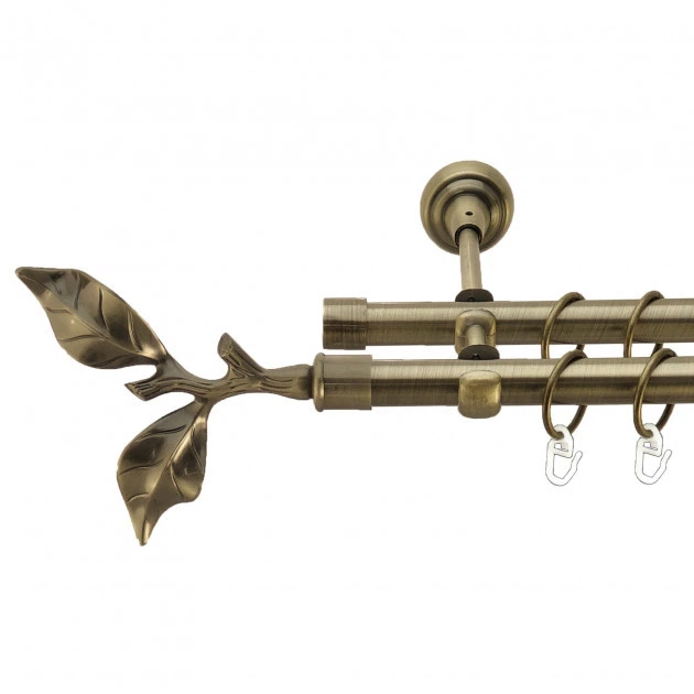 Карниз для штор Orvit Лист троянди металевий дворядний гладка труба кільце металеве Антик 16\16 мм 160 см