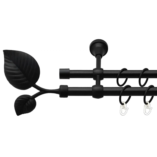 Карниз Orvit Листок Великий металевий Двухрядные відкритий гладка труба кільце металеве Чорний Оксамит 16\16 мм 200 см (00-0