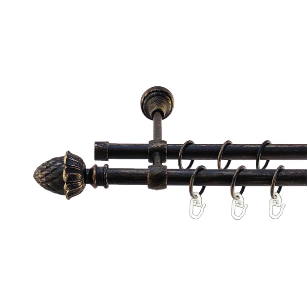 Карниз Orvit Белуно металевий дворядний відкритий скручена труба кільце металеве Антик 19\19 мм 160 см (00-00022177)