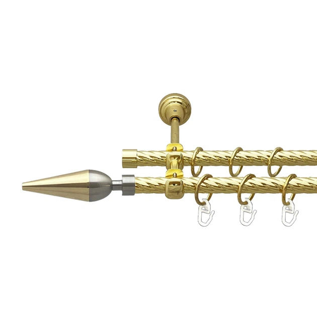 Карниз Orvit Лінея металевий дворядний відкритий скручена труба кільце металеве Золото 16\16 мм 200 см (00-00024945)