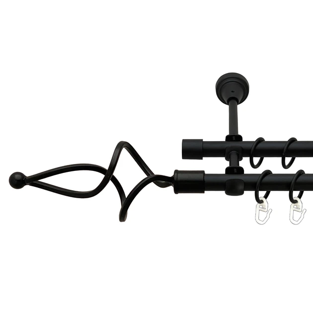 Карниз Orvit Ажур Хвилястий металевий дворядний відкритий гладка труба кільце металеве Чорний Оксамит 16\16 мм 200 см (00-00
