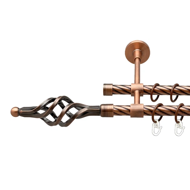 Карниз Orvit Ажур Мала металевий дворядний закритий скручена труба кільце металеве Мідь 16\16 мм 200 см (00-00025256)