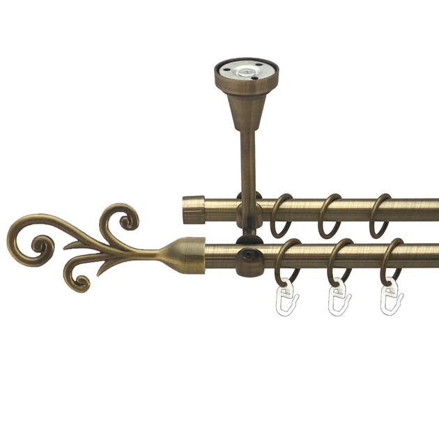 Карниз подвійний Cardinal КВАДРО+РУЛЛО з гачком 16/16 мм 200 см антик