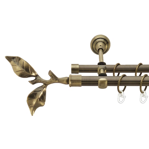 Карниз Orvit Листок Троянди металевий дворядний відкритий рифлена труба кільце металеве Антик 19\16 мм 160 см (00-00021991)