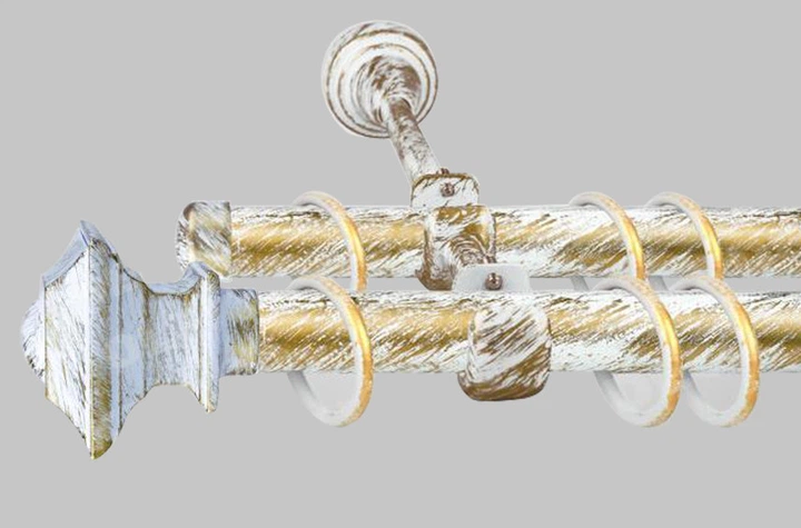 Карниз для штор Decolux дворядний металевий 25 мм Борджеза Біле Золото 320 см стик труб