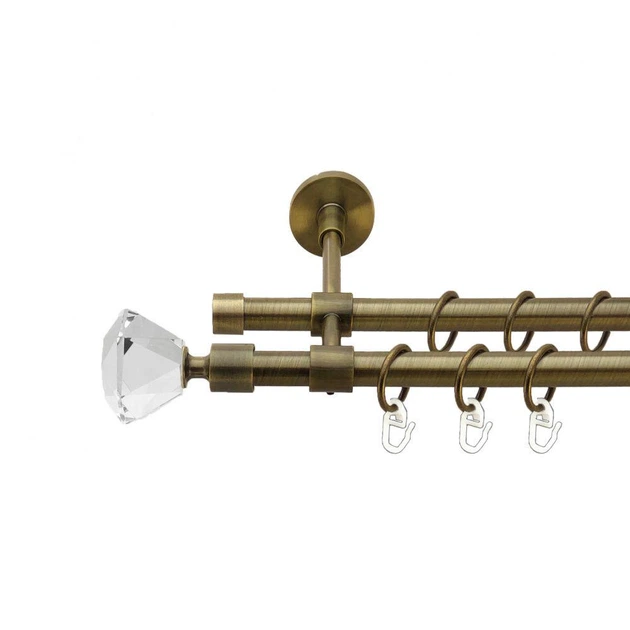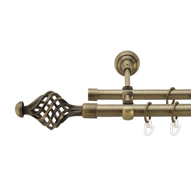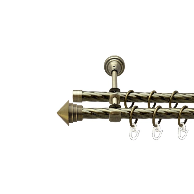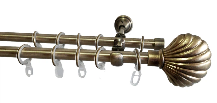 Карниз подвійний Cardinal МУШЛЯ+РУЛЛО з гачком 16/16 мм 200 см антик