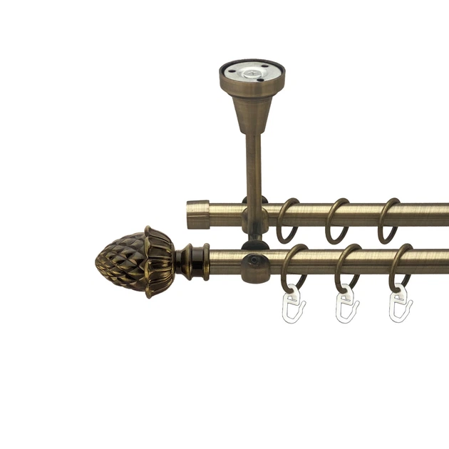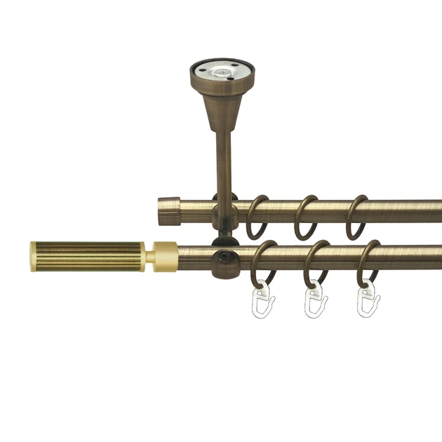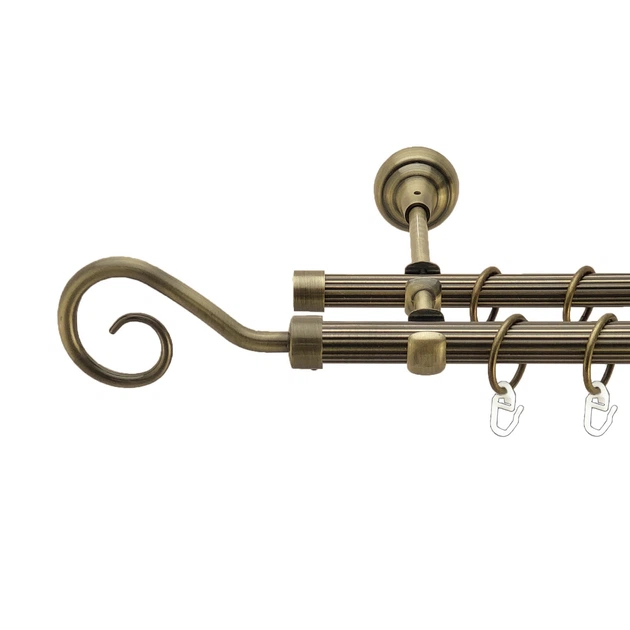Карниз Orvit Гак металевий дворядний відкритий рифлена труба кільце металеве Антик 19\16 мм 160 см (00-00017339)