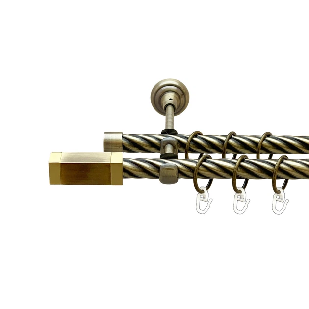 Карниз Orvit Борджеза металевий дворядний відкритий скручена труба кільце металеве Антик 19\19 мм 160 см (00-00022181)