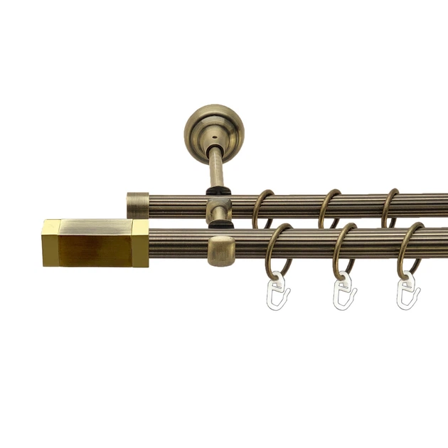 Карниз Orvit Квадро металевий дворядний відкритий рифлена труба кільце металеве Антик 19\16 мм 160 см (00-00017351)