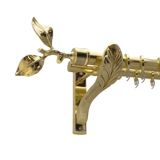 Карниз Orvit Листок Троянди металевий дворядний ретро гладка труба кільце фасонне металеве Золото 25\19 мм 300 см (00-000096