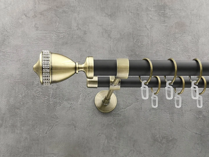 Карниз Quadrum Етернія 400 см подвійний антик/чорний матовий модерн 25 мм гладка (кільця з гачками)