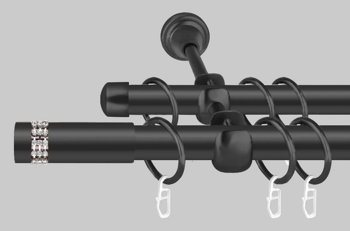 Карниз Decolux Чорний Матовий для штор дворядний металевий 19 мм Хантос комплект Чорний матовий 320 см стик труб