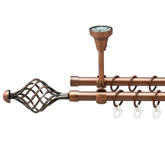 Карниз Orvit Таджа металевий дворядний відкритий гладка труба кільце металеве Мідь 16\16 мм 200 см (00-00020717)