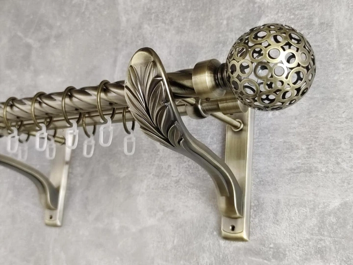 Карниз MStyle металевий для штор дворядний Палацио 25/19мм ретро кручений 400см Антик (A011020)