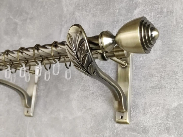 Карниз MStyle металевий для штор дворядний Листок Троянди 25/19мм ретро кручений 400см Сатин (A012030)