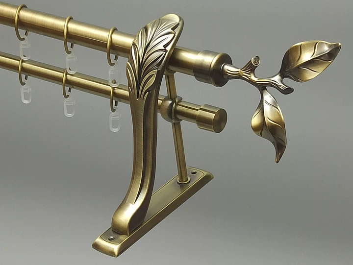 Карниз Orvit металевий для штор дворядний 25/19мм Ретро Листок Троянди гладкий 400см Антик (B010240)