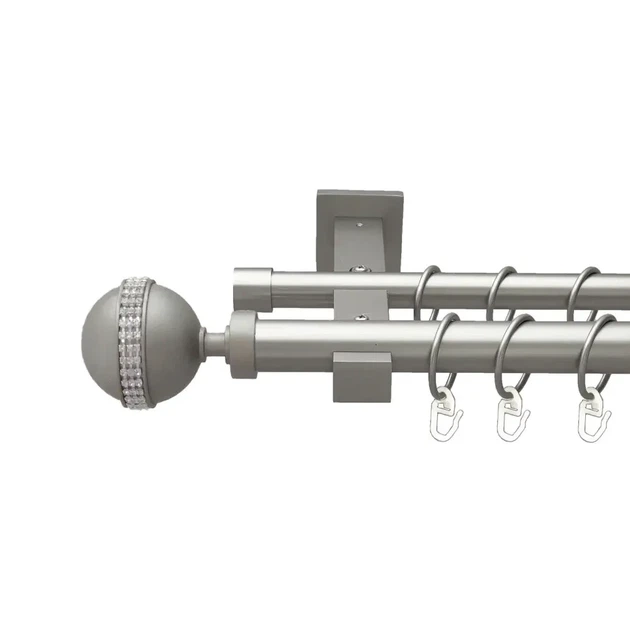 Карниз Orvit металевий дворядний Делія труба гладка 19/19мм кронштейн циліндр 240см Сатин (K020438)