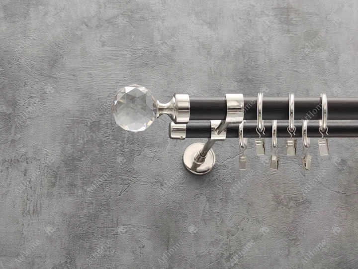 Карниз Quadrum Модерно Кристал подвійний дерево-метал 240 см горіх/сталь 25 мм