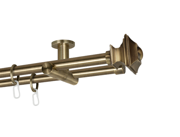 Карниз Orvit металевий дворядний Верді труба гладка 19/19мм кронштейн стельовий 300см Антик (K010574)