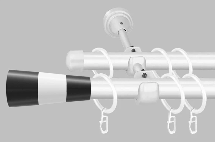 Карниз для штор Decolux металевий дворядний 19 мм Білий Валео білий + чорний 320 см стик 2 труб