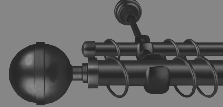 Карниз готовий укомплектований Куля подвійний (комплект), штанга 300 см d19 мм чорний