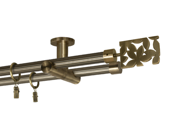 Карниз Quadrum Бостон 300 см подвійний Антик 19/19 мм гладка/імпресійна (кільця з гачками)
