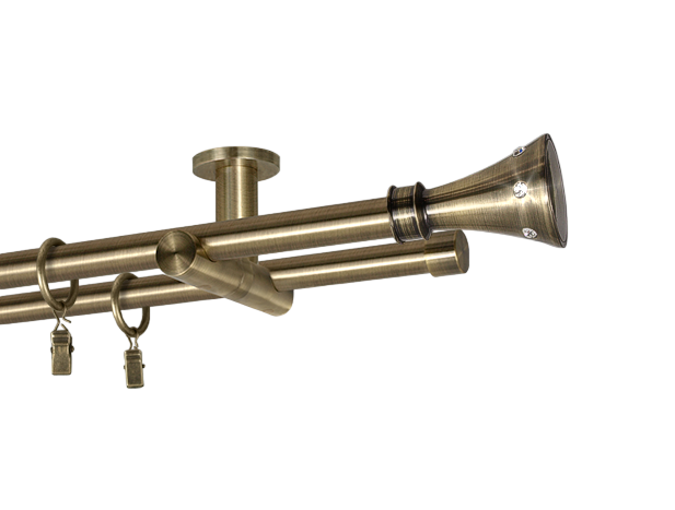 Карниз Quadrum Дуо 240 см подвійний універсальний Антик 25/19 мм гладка/імпресійна (кільця з гачками)