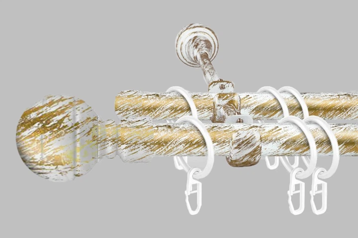 Карниз для штор Decolux дворядний металевий 19 мм Біле-Золото комплект320 см стик труб