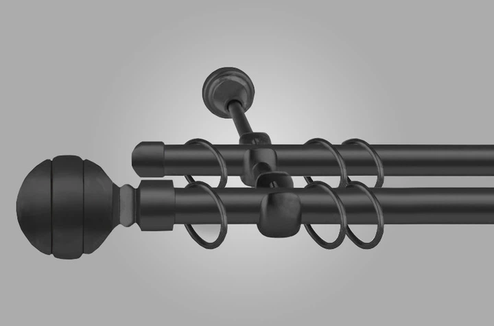 Карниз для штор Decolux дворядний металевий 19 мм Савона Чорний матовий 320 см стик 2-х труб