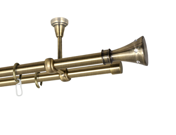 Карниз Orvit металевий дворядний Ліллет труба гладка 19/19мм кронштейн стельовий 400см Антик (H010620)