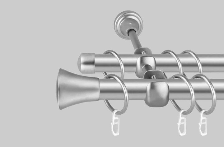 Карниз для штор Decolux металевий дворядний 19 мм Принц Сталь 320 см стик 2 труб