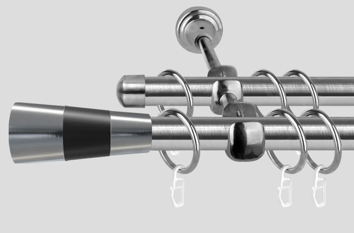 Карниз для штор Decolux металевий дворядний 19 мм Сталь Валео сталь + чорний 320 см стилок 2 труб