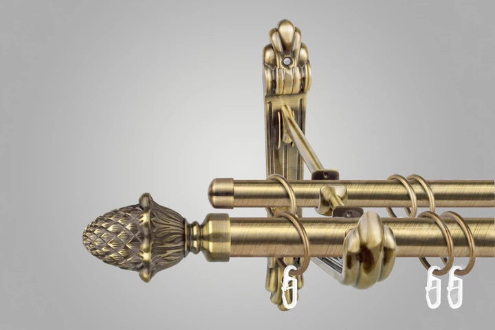 Карниз для штор Sundeco дворядний металевий 25 мм Шишка РЕТРО 320 см стик труб