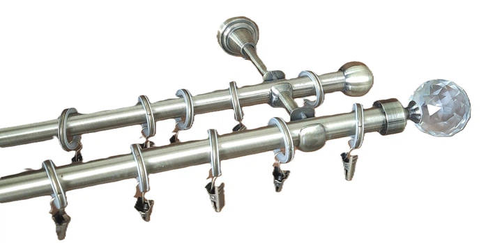 Карниз Orvit Листок Троянди металевий дворядний техно гладка труба кільце металеве Сатин 19\19 мм 240 см (00-00027385)
