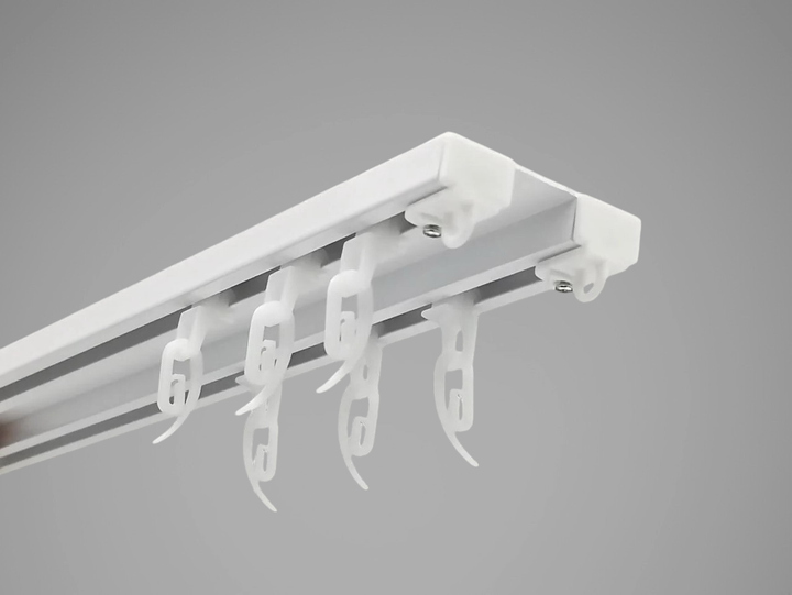 Карниз для штор стельовий дворядний алюмінієвий посилений профіль БР18 10/55/40мм з бігунком 200см Білий (F010010)