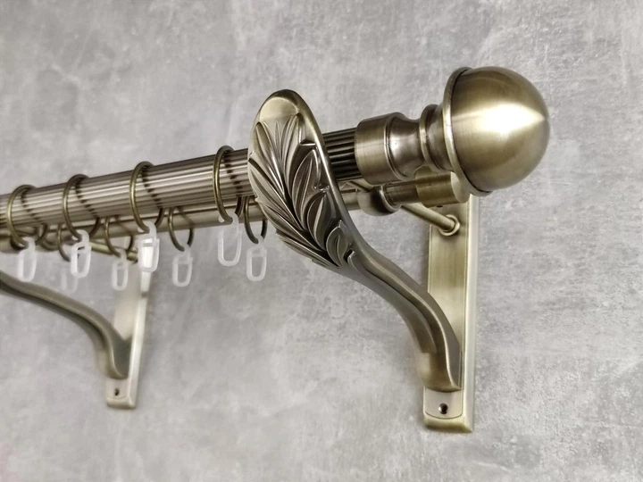 Карниз Orvit металевий для штор дворядний 25/19мм Ретро Листок Троянди кручений 400см Антик (B010230)